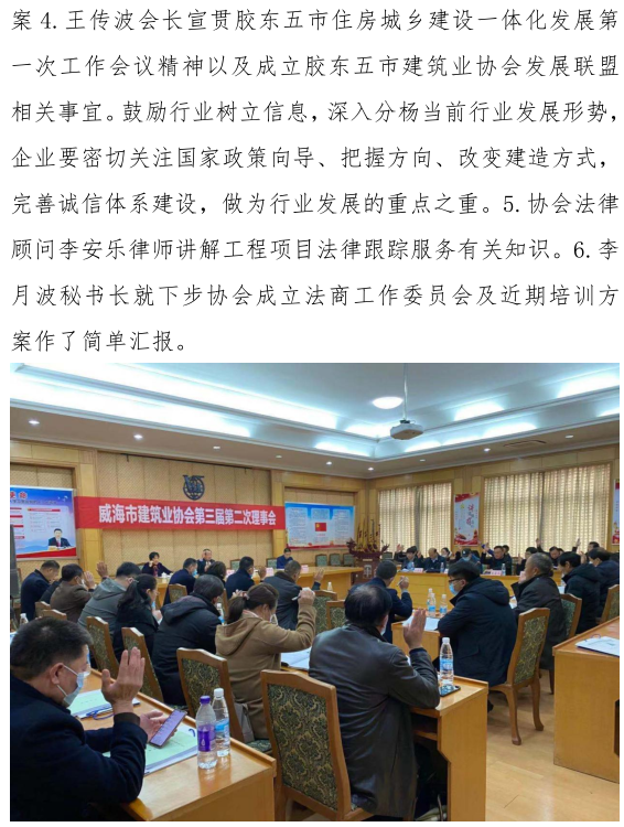 >威海市建筑業(yè)協(xié)會召開第三屆理事會第二次會議