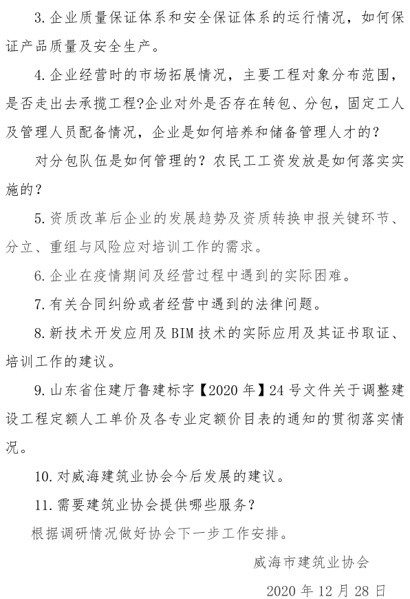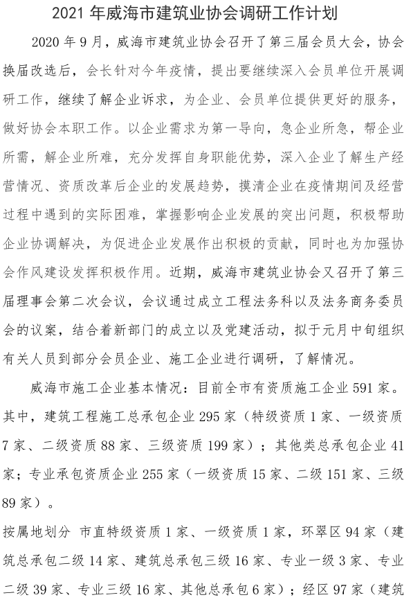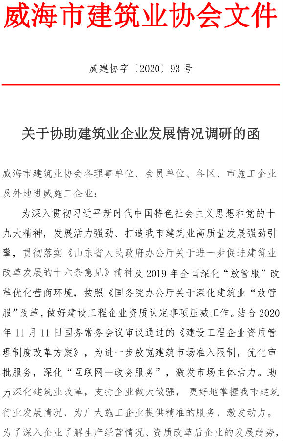 威海市建筑業(yè)協(xié)會關(guān)于 評選2020年度建筑業(yè)先進(jìn)單位的通知