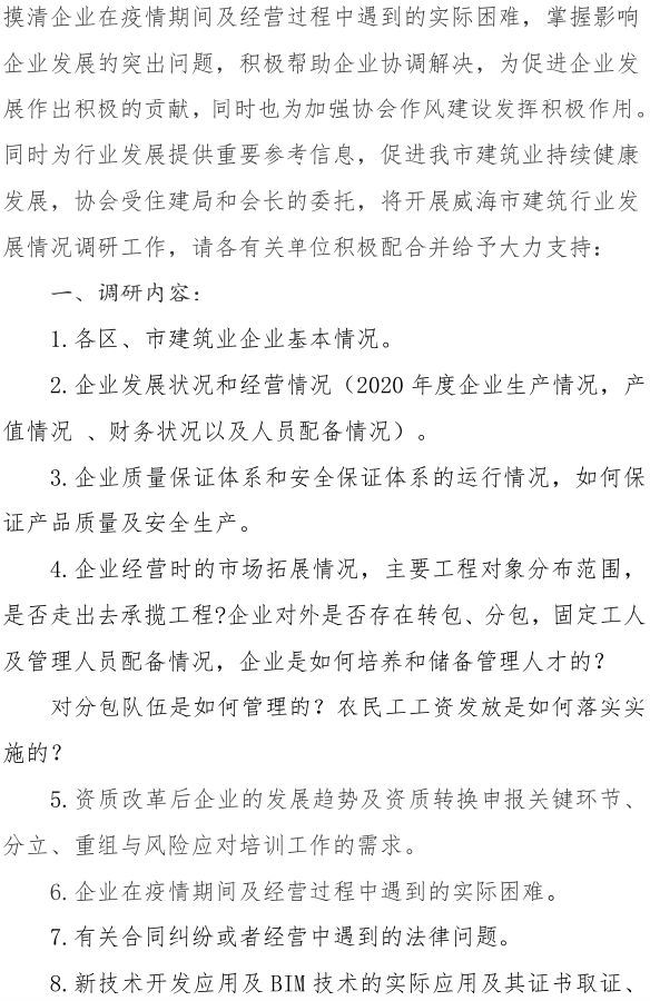 關(guān)于協(xié)助建筑業(yè)企業(yè)發(fā)展情況調(diào)研的函