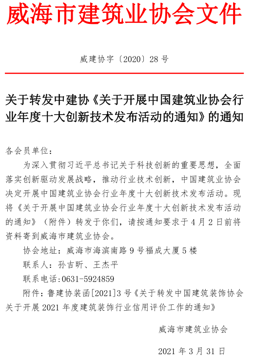 關于轉(zhuǎn)發(fā)中建協(xié)《關于開展中國建筑業(yè)協(xié)會行業(yè)年度十大創(chuàng)新技術發(fā)布活動的通知》的通知