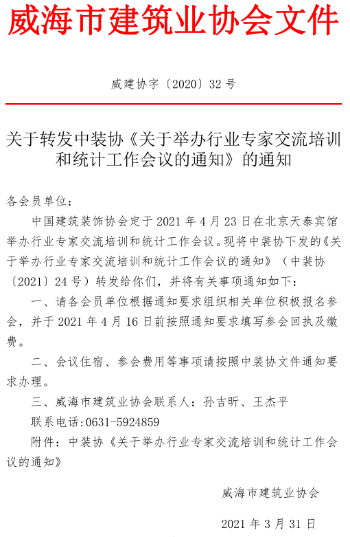 關(guān)于轉(zhuǎn)發(fā)中裝協(xié)《關(guān)于舉辦行業(yè)專家交流培訓(xùn)和統(tǒng)計(jì)工作會議的通知》的通知