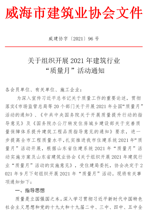 關(guān)于組織開展2021年建筑行業(yè) “質(zhì)量月”活動通知