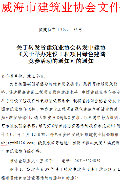 關(guān)于轉(zhuǎn)發(fā)省建筑業(yè)協(xié)會(huì)轉(zhuǎn)發(fā)中建協(xié)《關(guān)于舉辦建設(shè)工程項(xiàng)目綠色建造競賽活動(dòng)的通知》的通知