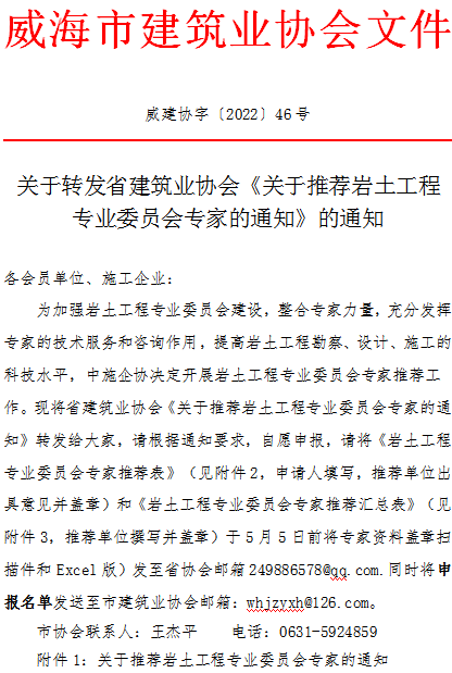 關于轉發(fā)省建筑業(yè)協(xié)會《關于推薦巖土工程專業(yè)委員會專家的通知》的通知