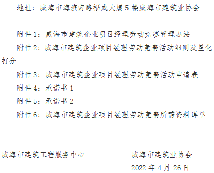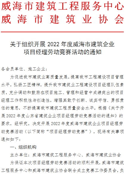 >關于組織開展2022年威海市建筑企業(yè)項目經(jīng)理勞動競賽活動的通知
