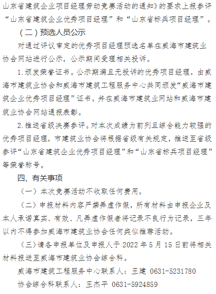 關于組織開展2022年威海市建筑企業(yè)項目經(jīng)理勞動競賽活動的通知