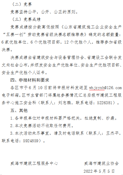 >關(guān)于組織開展2022年山東省建筑施工企業(yè)安全生產(chǎn)“五賽一創(chuàng)”勞動競賽活動