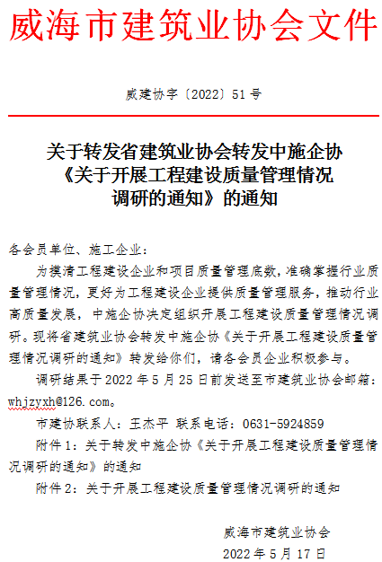 附件1:關于轉發(fā)中施企協《關于開展工程建設質量管理情況調研的通知》的通知.pdf