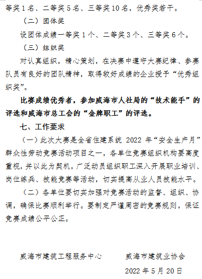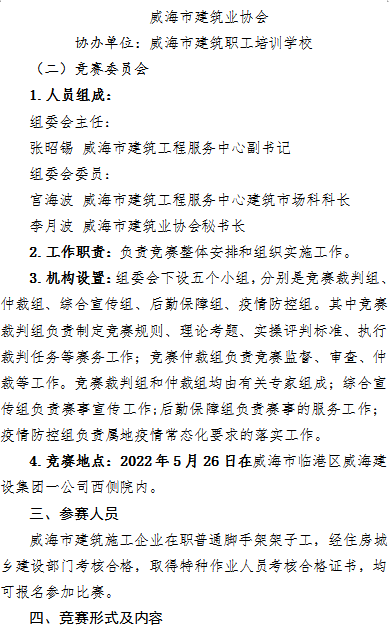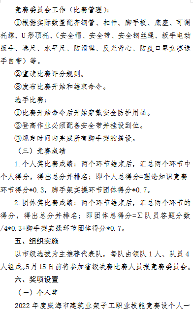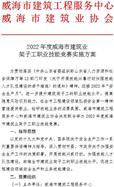 >2022年度威海市建筑業(yè)架子工職業(yè)技能競賽實施方案