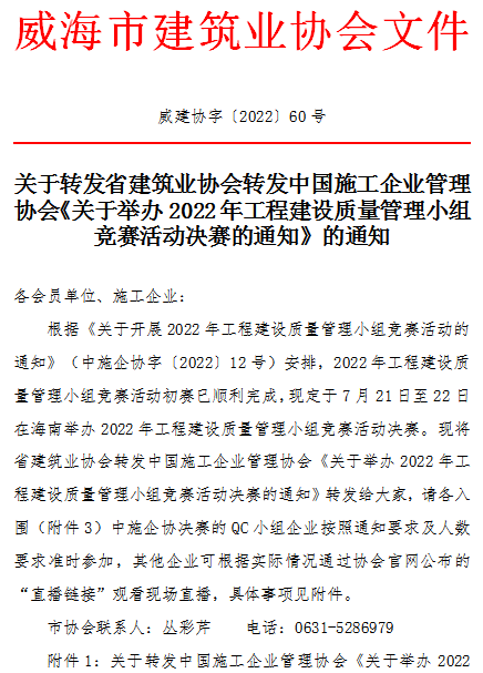 附件1:關于轉發(fā)中國施工企業(yè)管理協(xié)會《關于舉辦2022年工程建設質量管理小組競賽活動決賽的通知》的通知.pdf