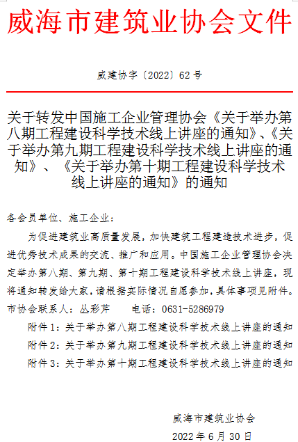 關(guān)于轉(zhuǎn)發(fā)中國施工企業(yè)管理協(xié)會《關(guān)于舉辦第八期工程建設(shè)科學(xué)技術(shù)線上講座的通知》、《關(guān)于舉辦第九期工程建設(shè)科學(xué)技術(shù)線上講座的通知》、《關(guān)于舉辦第十期工程建設(shè)科學(xué)技術(shù)線上講座的通知》的通知
