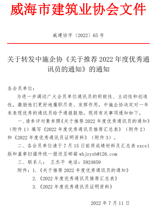 關于轉發(fā)中施企協(xié)《關于推薦2022年度優(yōu)秀通訊員的通知》的通知