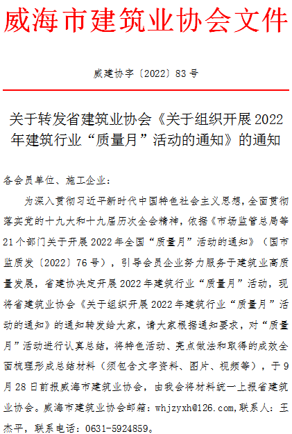 關于轉發(fā)省建筑業(yè)協(xié)會《關于組織開展2022年建筑行業(yè)“質量月”活動的通知》的通知