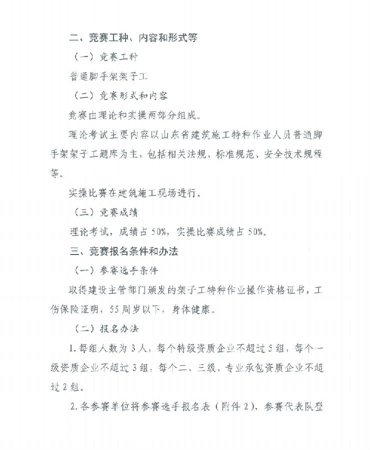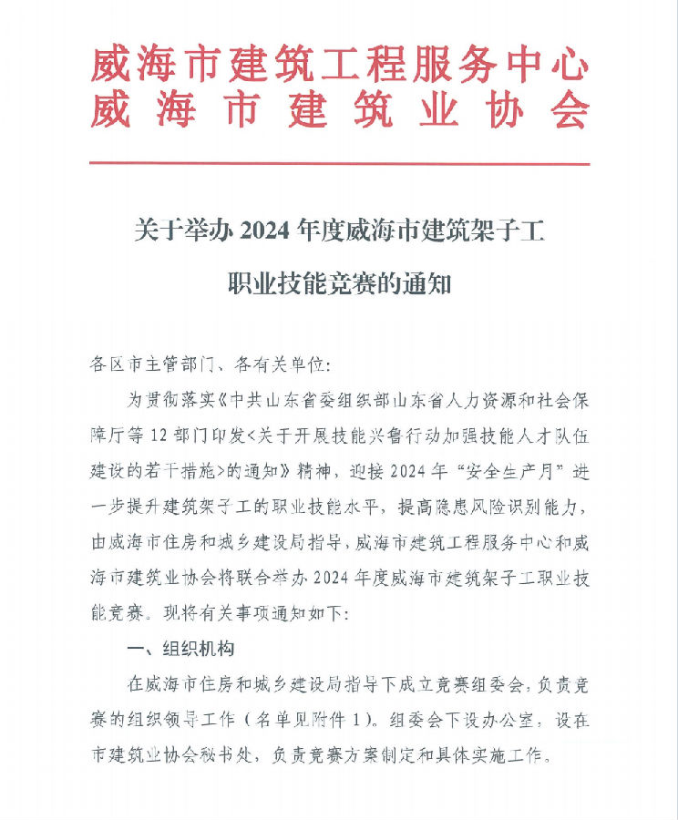 >關(guān)于舉辦2024年度威海市建筑架子工職業(yè)技能競賽的通知