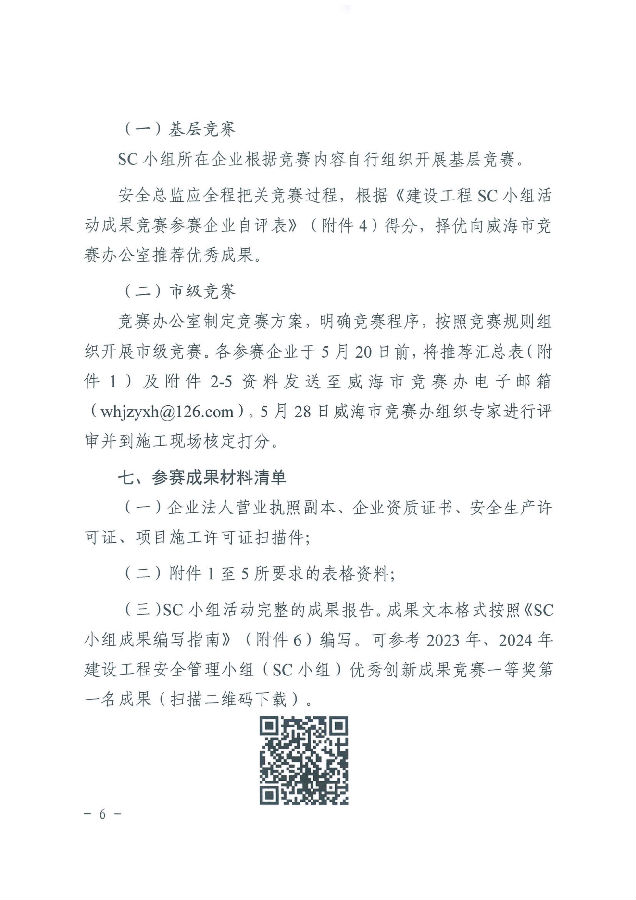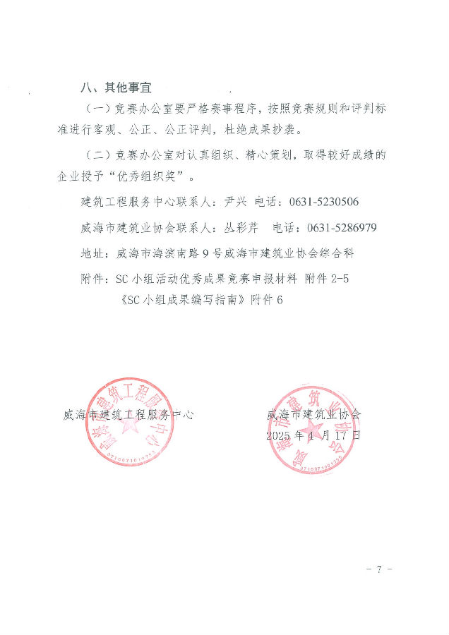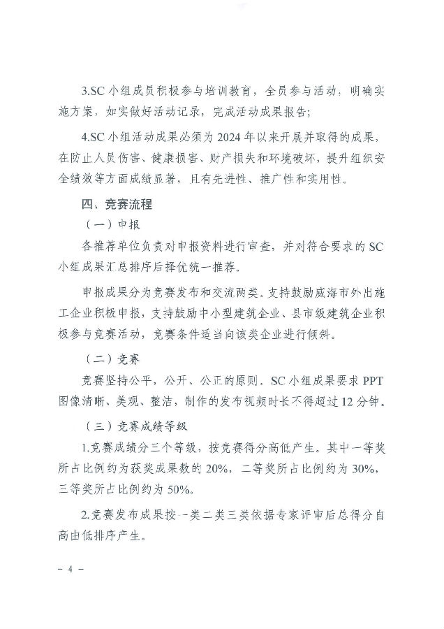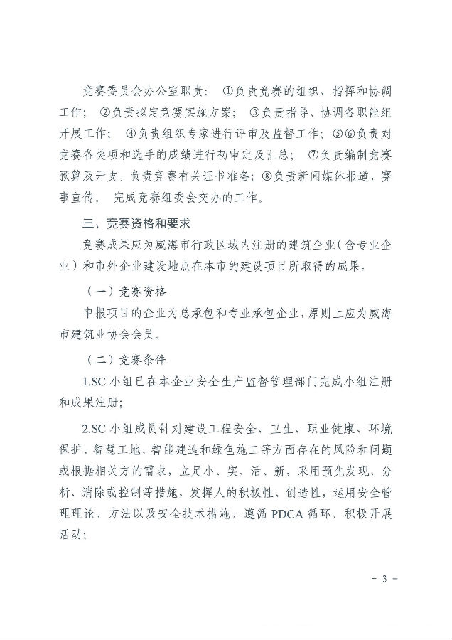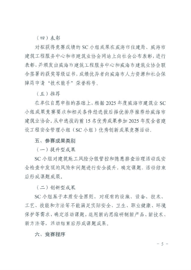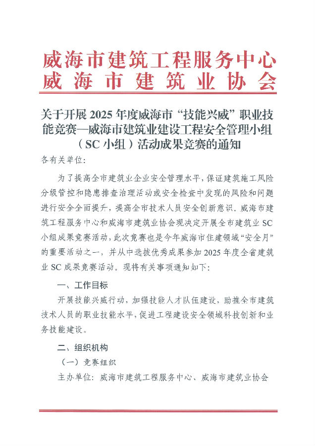 >關(guān)于開展2025年度威海市“技能興威”職業(yè)技能競賽—威海市建筑業(yè)建設(shè)工程安全管理小組(SC小組)活動成果競賽的通知