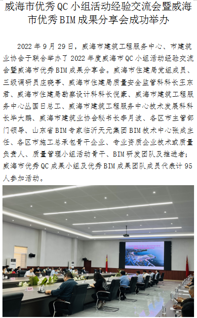 威海市優(yōu)秀QC小組活動(dòng)經(jīng)驗(yàn)交流會(huì)暨威海市優(yōu)秀BIM成果分享會(huì)成功舉辦