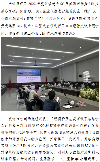 >威海市優(yōu)秀QC小組活動(dòng)經(jīng)驗(yàn)交流會(huì)暨威海市優(yōu)秀BIM成果分享會(huì)成功舉辦
